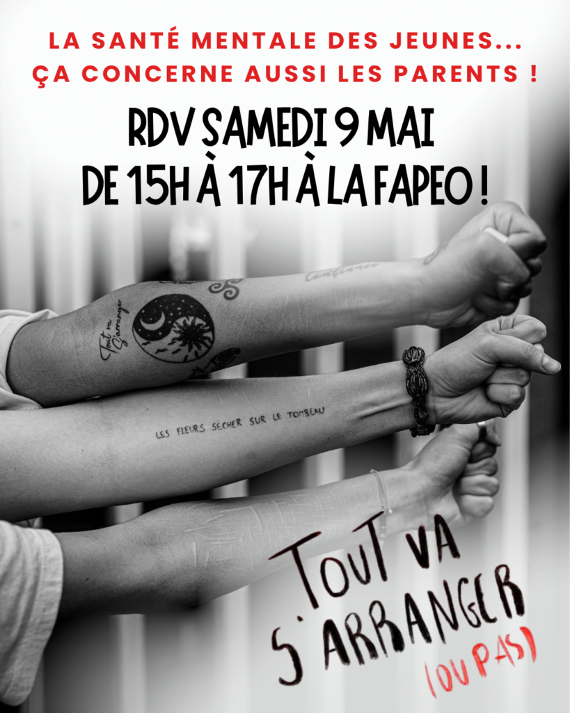 La santé mentale des jeunes, ça concerne aussi les parents ! La FAPEO vous invite à prendre un moment pour en parler le samedi 9 mai de 15h à 17h.